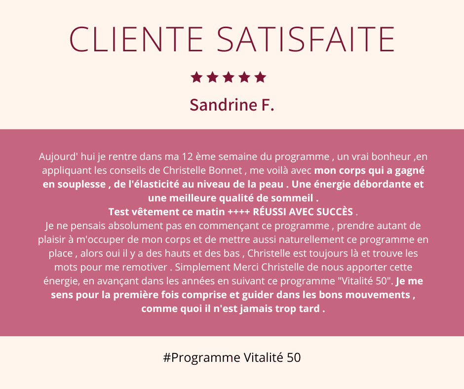 De cette expérience est né le programme Vitalité 50 : 5 mois pour retrouver énergie, tonicité et sérénité, sans passer par mes dix années de galères.
