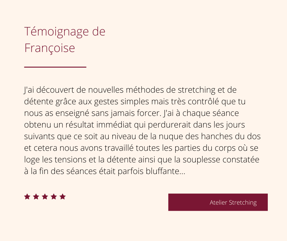 Depuis plus de 25 ans, j'accompagne des centaines de femmes avec des séances respectueuses de leur corps et adaptées à leur vie.